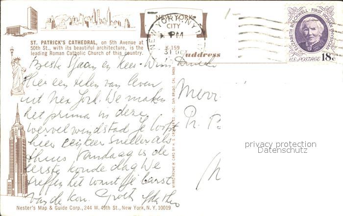 72306938 old postcard New York City St. Patrick Cathedral postalisch gelaufen Erhaltung siehe scans KatCode: 14140340000000