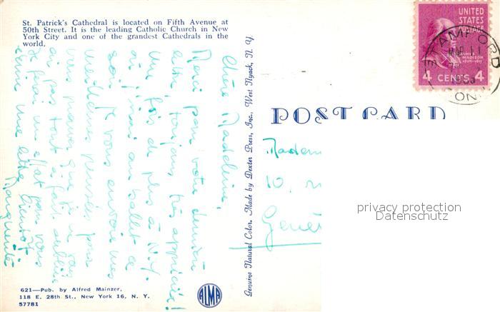 72944720 old postcard New York City St Patricks Cathedral postalisch gelaufen Erhaltung siehe scans [WerneD78] KatCode: 14140340000000