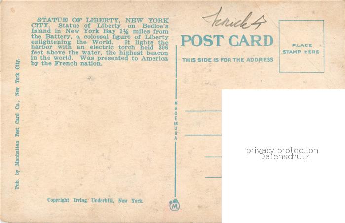43193257 New York City Statue of Liberty postalisch nicht gelaufen Erhaltung siehe scans [FriedD77] KatCode: 14140340000000
