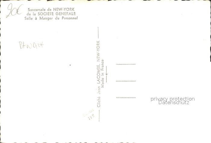 12177263 New York City Succursale de New York de la Societe Generale Salle a Manger du Personnel postalisch nicht gelaufen Erhaltung siehe scans KatCode: 14140340000000