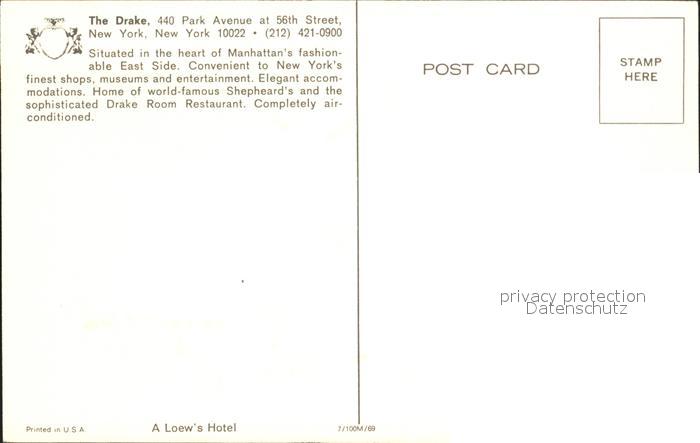 32330738 New York City The Drake postalisch nicht gelaufen Erhaltung siehe scans KatCode: 14140340000000