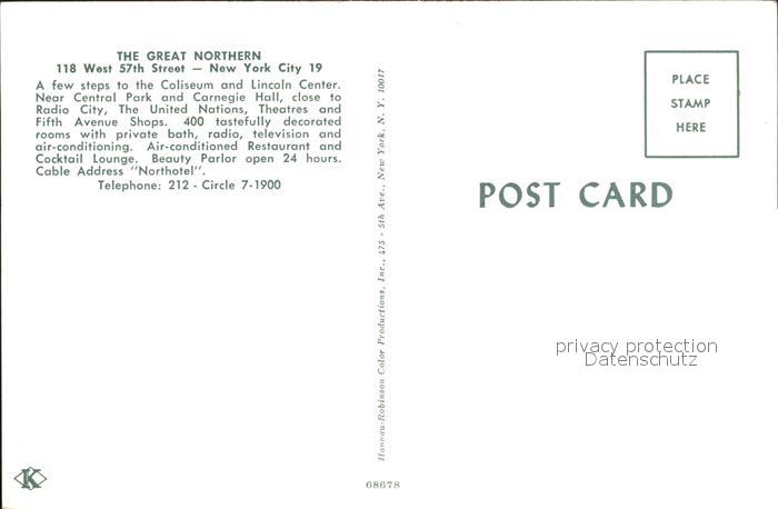 72316499 New York City the Great Northern Hotel Halle postalisch nicht gelaufen Erhaltung siehe scans KatCode: 14140340000000
