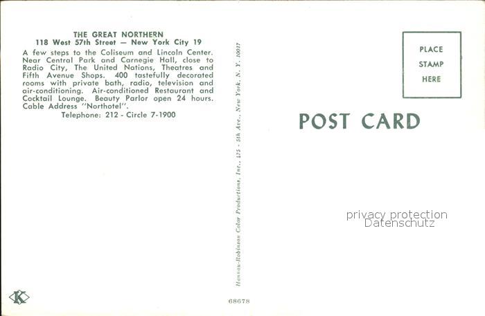 72476777 New York City The Great Northern Hotel Lounge postalisch nicht gelaufen Erhaltung siehe scans KatCode: 14140340000000