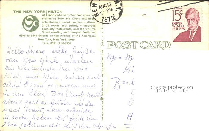 72124601 old postcard New York City The New York Hilton postalisch gelaufen Erhaltung siehe scans KatCode: 14140340000000