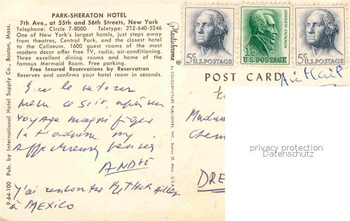 72811440 old postcard New York City The Park Sheraton Illustration postalisch gelaufen Erhaltung siehe scans [FriedD77] KatCode: 14140340000000