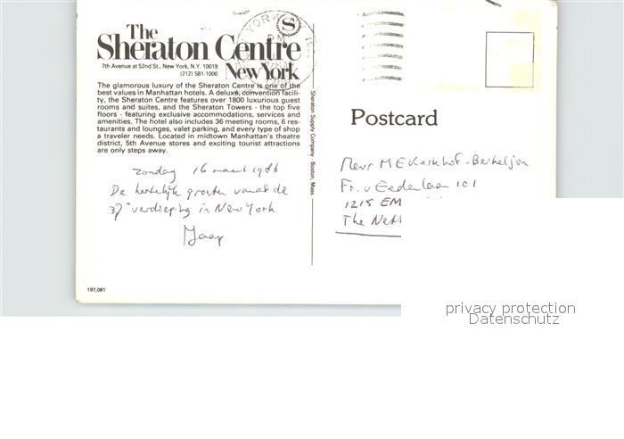 72490656 New York City The Sheraton Centre postalisch nicht gelaufen Erhaltung siehe scans KatCode: 14140340000000