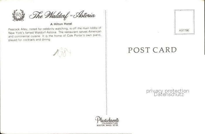 72427174 New York City The Waldorf Astoria A Hilton Hotel postalisch nicht gelaufen Erhaltung siehe scans KatCode: 14140340000000
