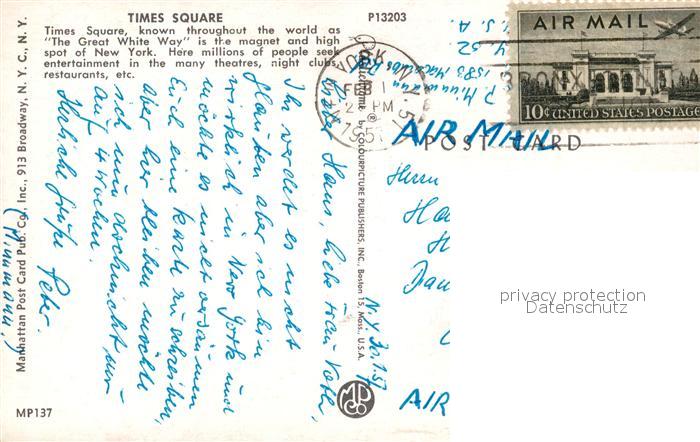 73295313 old postcard New York City Times Square postalisch gelaufen Erhaltung siehe scans [KathaD81] KatCode: 14140340000000