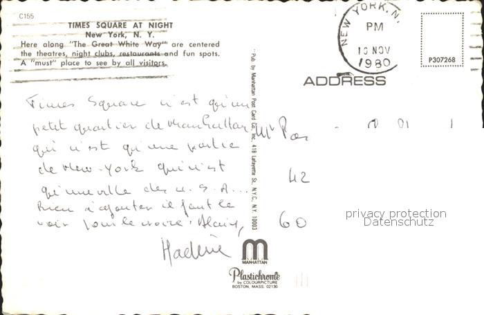 72290025 old postcard New York City Times Square at night postalisch gelaufen Erhaltung siehe scans KatCode: 14140340000000