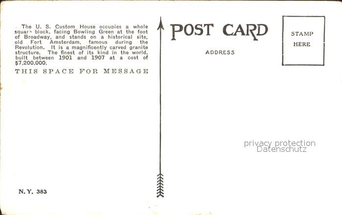 11693252 New York City U.S. Custom House postalisch nicht gelaufen Erhaltung siehe scans KatCode: 14140340000000