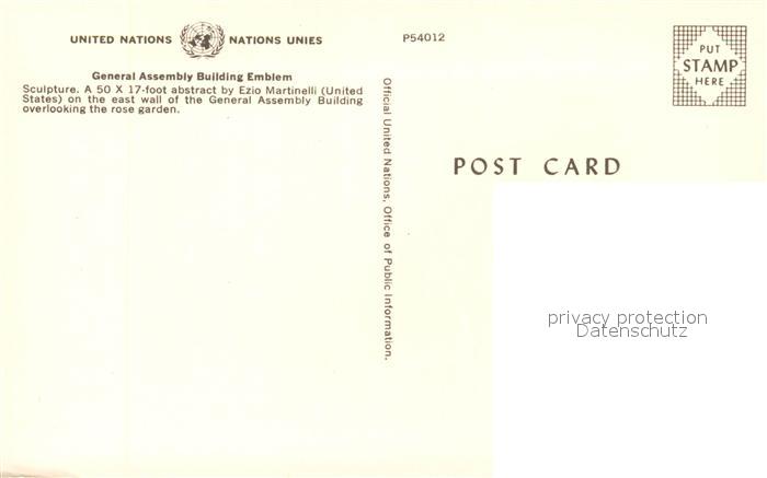 73057239 New York City UN General Assembly Building Emblem postalisch nicht gelaufen Erhaltung siehe scans [WerneD78] KatCode: 14140340000000