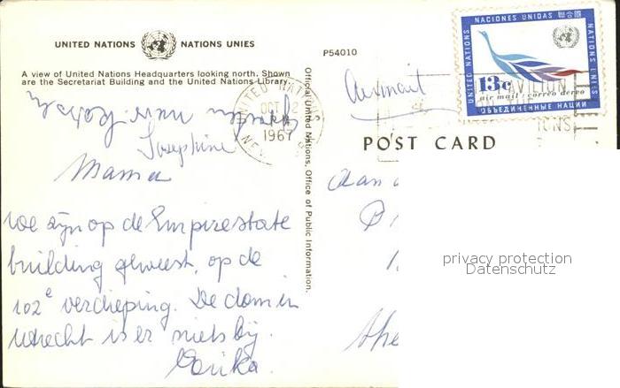 72306846 old postcard New York City United Nations postalisch gelaufen Erhaltung siehe scans KatCode: 14140340000000