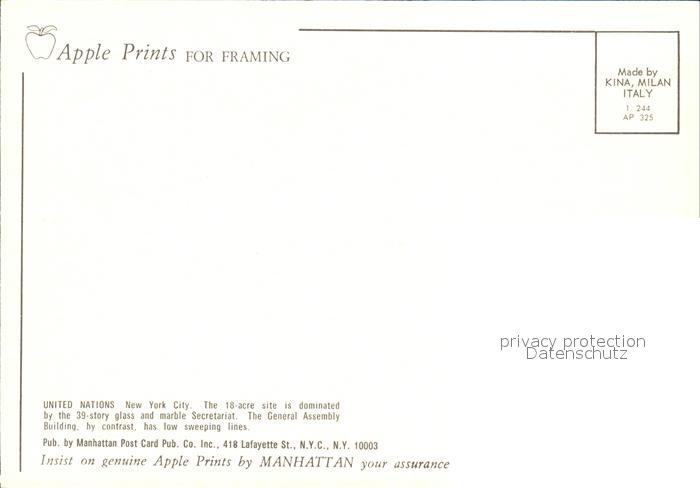 72556473 New York City United Nations Building postalisch nicht gelaufen Erhaltung siehe scans [AndreD76] KatCode: 14140340000000