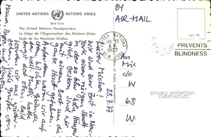 72445613 old postcard New York City United Nations Building postalisch gelaufen Erhaltung siehe scans KatCode: 14140340000000