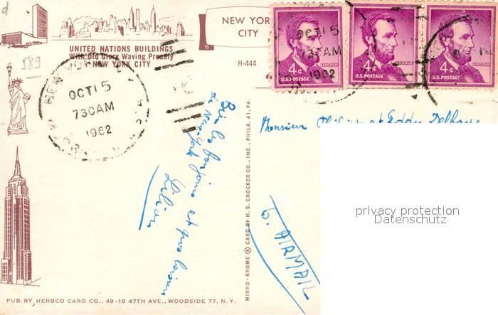 73059008 old postcard New York City United Nations Building postalisch gelaufen Erhaltung siehe scans [WerneD78] KatCode: 14140340000000