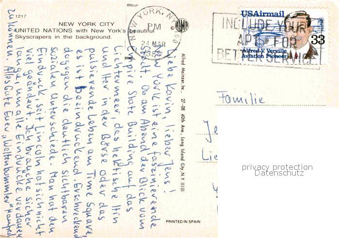 72663559 old postcard New York City United Nations Building Skyscrapers aerial view postalisch gelaufen Erhaltung siehe scans [FriedD77] KatCode: 14140340000000