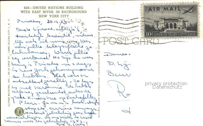 72229951 old postcard New York City United Nations Building with East River postalisch gelaufen Erhaltung siehe scans KatCode: 14140340000000