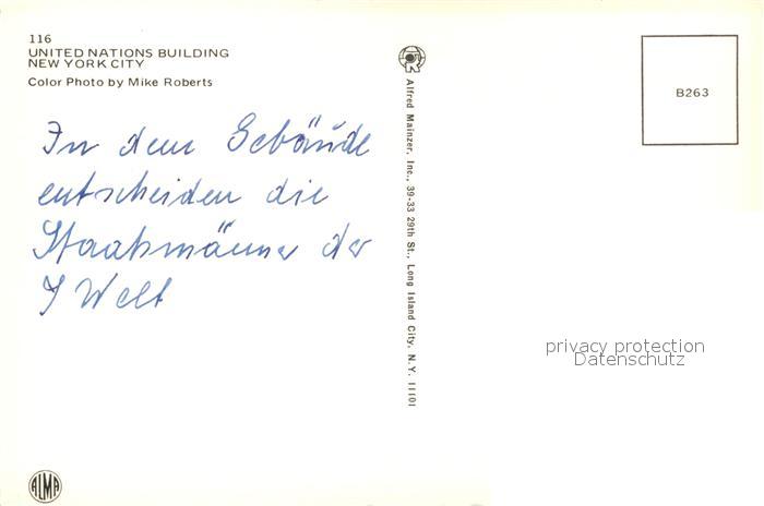 73260109 New York City United Nations Building postalisch nicht gelaufen Erhaltung siehe scans [NatalD47] KatCode: 14140340000000