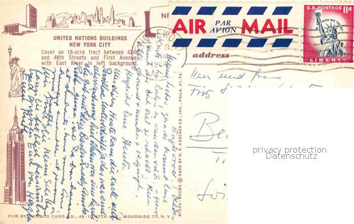 72637173 old postcard New York City United Nations Buildings East River postalisch gelaufen Erhaltung siehe scans [FriedD77] KatCode: 14140340000000