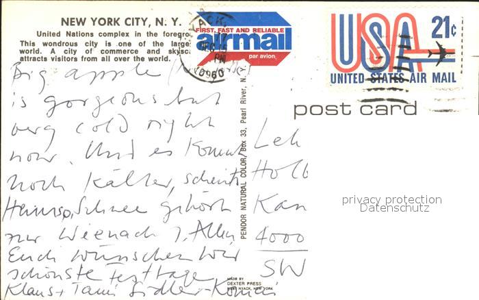72351065 old postcard New York City United Nations Complex postalisch gelaufen Erhaltung siehe scans KatCode: 14140340000000