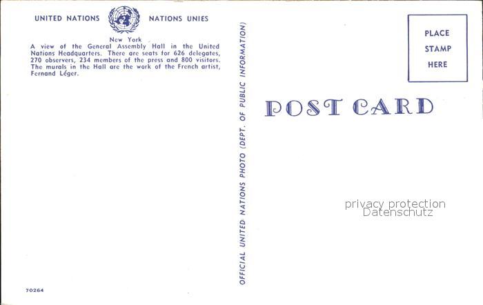 72285070 New York City United Nations General Assembly Hall postalisch nicht gelaufen Erhaltung siehe scans KatCode: 14140340000000