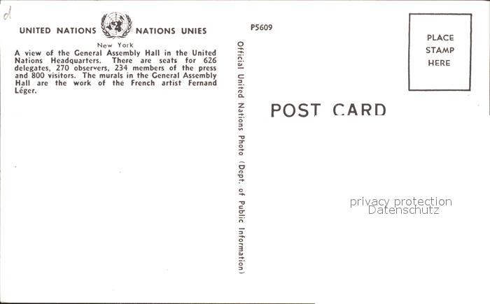 71964717 New York City United Nations General Assembly Hall postalisch nicht gelaufen Erhaltung siehe scans KatCode: 14140340000000
