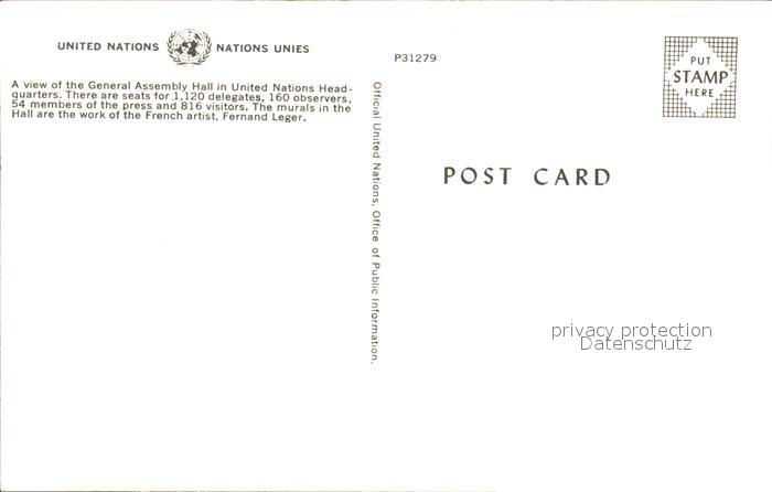 71964715 New York City United Nations General Assembly Hall intern postalisch nicht gelaufen Erhaltung siehe scans KatCode: 14140340000000
