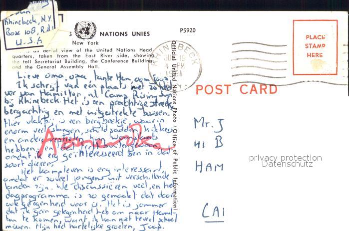72272885 old postcard New York City United Nations Head quarters postalisch gelaufen Erhaltung siehe scans KatCode: 14140340000000