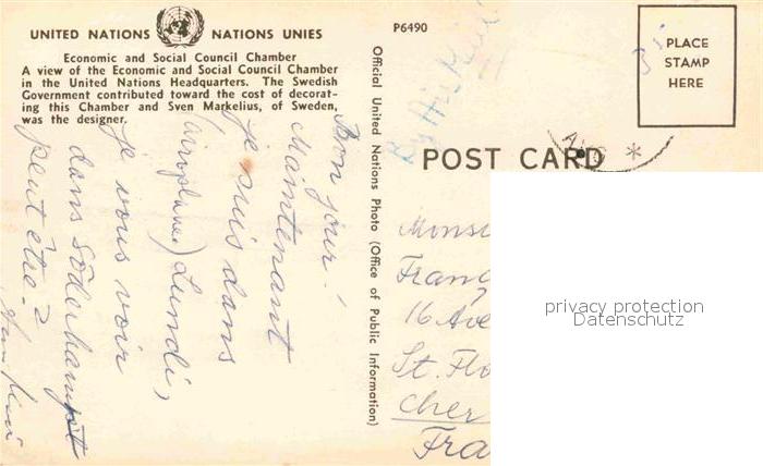 72900127 old postcard New York City United Nations Headquarter postalisch gelaufen Erhaltung siehe scans [LiesaD40] KatCode: 14140340000000
