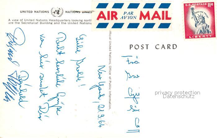 73257885 old postcard New York City united Nations Headquarteres postalisch gelaufen Erhaltung siehe scans [NatalD47] KatCode: 14140340000000
