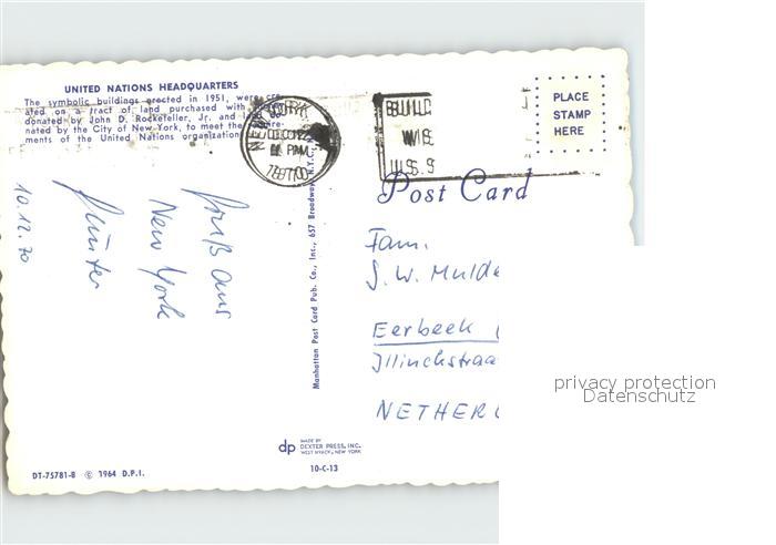 72302242 old postcard New York City United Nations Headquarters postalisch gelaufen Erhaltung siehe scans KatCode: 14140340000000
