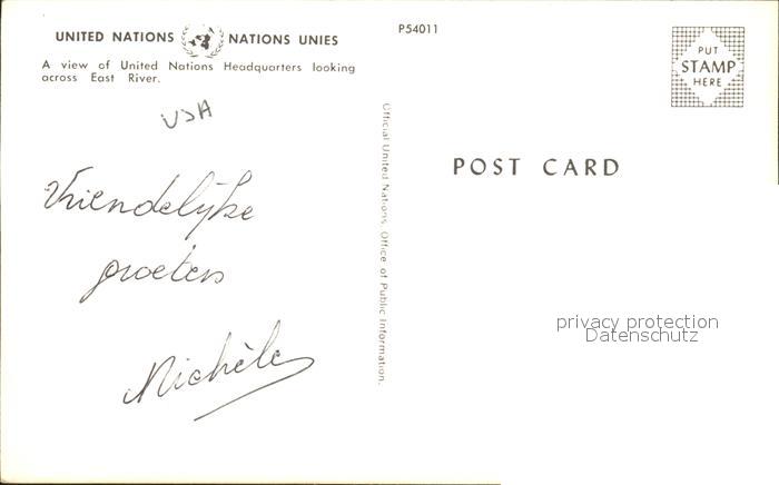 72289719 New York City United Nations Headquarters postalisch nicht gelaufen Erhaltung siehe scans KatCode: 14140340000000
