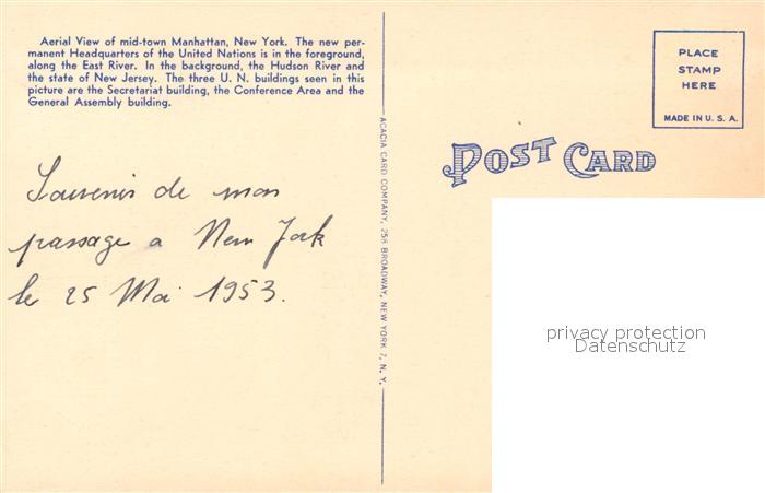 73588807 New York City United Nations Headquarters aerial view postalisch nicht gelaufen Erhaltung siehe scans [FriedD77] KatCode: 14140340000000