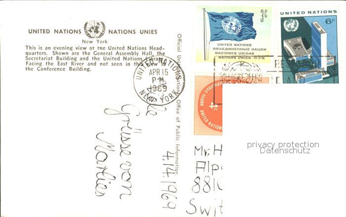 11688629 old postcard New York City United Nations Headquarters at night postalisch gelaufen Erhaltung siehe scans KatCode: 14140340000000
