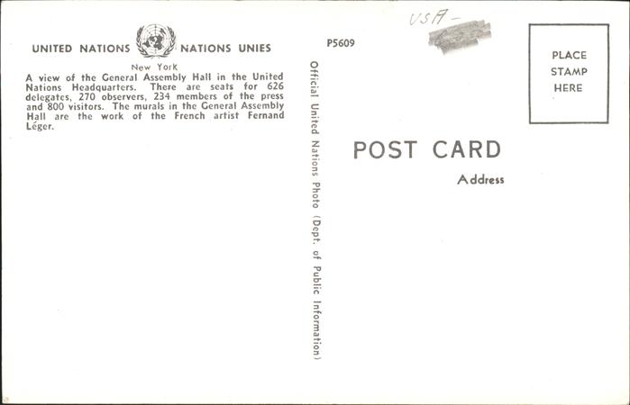 11491337 New York City United Nations Headquarters General Assembly Hall postalisch nicht gelaufen Erhaltung siehe scans KatCode: 14140340000000