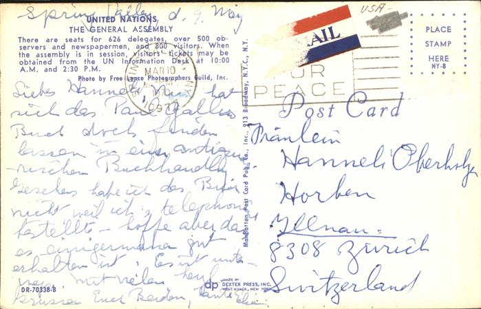 11491455 old postcard New York City United Nations Headquarters General Assembly Hall postalisch gelaufen KatCode: 14140340000000