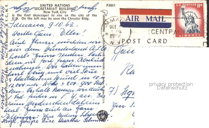 71566828 old postcard New York City United Nations Secretariat Building postalisch gelaufen Erhaltung siehe scans KatCode: 14140340000000