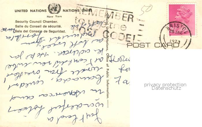 73123511 old postcard New York City United Nations Security Council Chamber postalisch gelaufen Erhaltung siehe scans [FriedD77] KatCode: 14140340000000