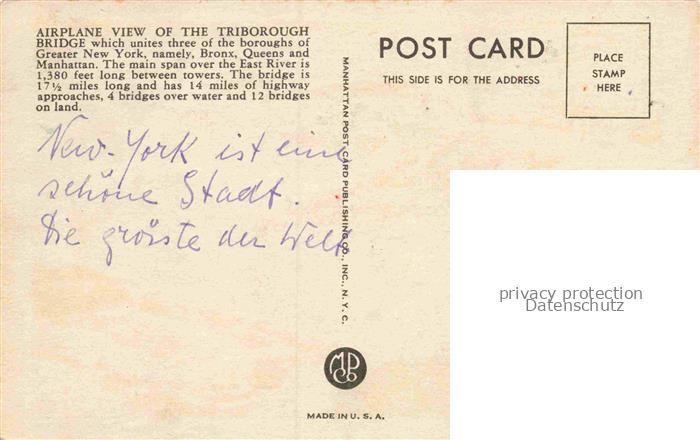 14104256 NEW YORK City USA Airplane view of the Triborough Bridge and Hell Gate Bridges Illustration postalisch nicht gelaufen Erhaltung siehe scans [FriedD77] KatCode: 14140340000000