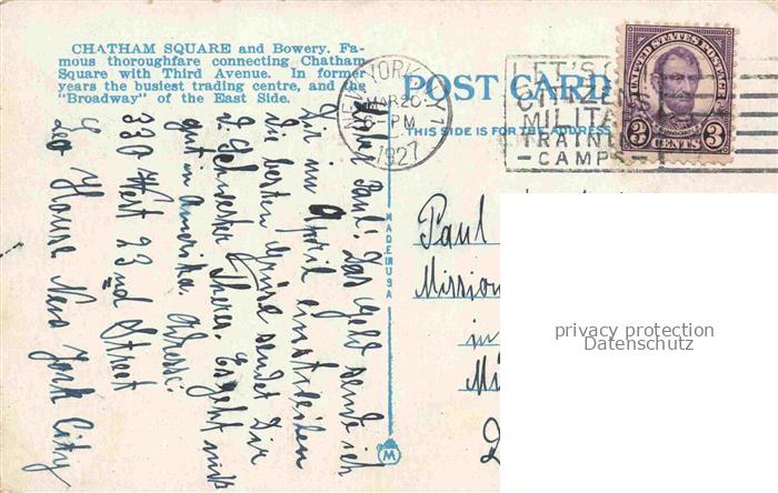 34142780 old postcard NEW YORK City USA Chatham Square and Bowery postalisch gelaufen Erhaltung siehe scans [FriedD77] KatCode: 14140340000000