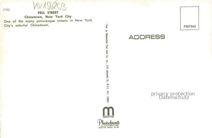 74154776 NEW YORK City USA Chinatown Pell Street postalisch nicht gelaufen Erhaltung siehe scans [WerneD78] KatCode: 14140340000000