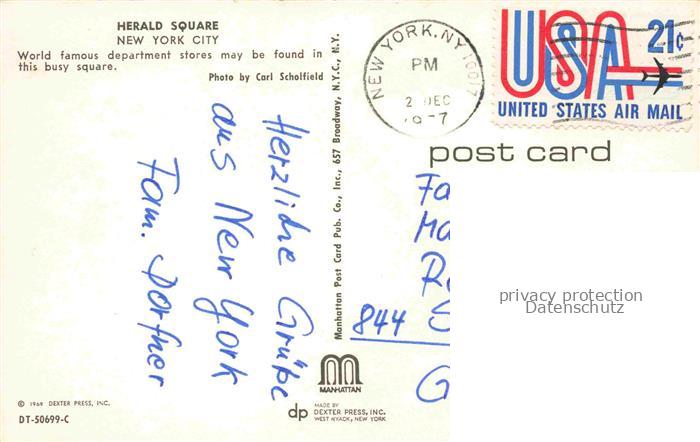 74128742 old postcard NEW YORK City USA Herald Square postalisch gelaufen Erhaltung siehe scans [FriedD77] KatCode: 14140340000000
