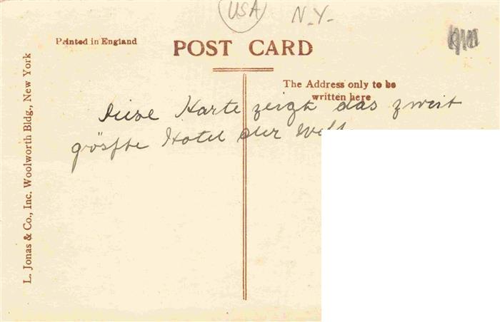 73973376 NEW YORK City USA Hotel Pennsylvania Illustration postalisch nicht gelaufen Erhaltung siehe scans [FriedD77] KatCode: 14140340000000