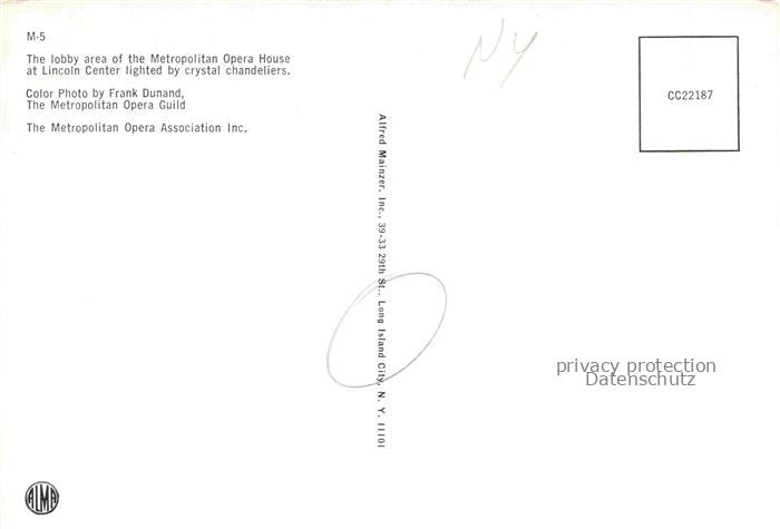 74092104 NEW YORK City USA Long Island City Metropolitan Opera Hause postalisch nicht gelaufen Erhaltung siehe scans [IrynaD87] KatCode: 14140340000000