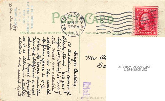 74123781 old postcard NEW YORK City USA Singer Building Illustration postalisch gelaufen Erhaltung siehe scans [FriedD77] KatCode: 14140340000000