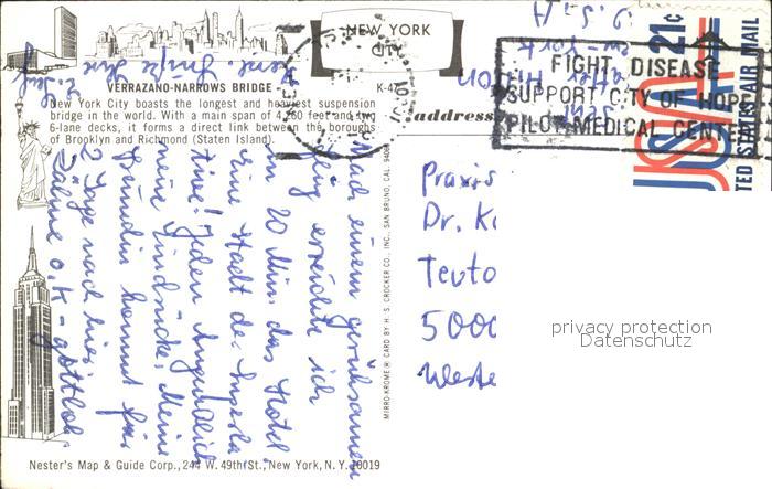 72375964 old postcard New York City Verrazano Narrow Bridge postalisch gelaufen Erhaltung siehe scans KatCode: 14140340000000