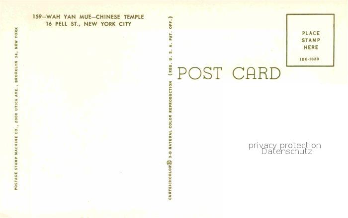 72812898 New York City Wah Yan Mue Chinese Tempel postalisch nicht gelaufen Erhaltung siehe scans [AndreD76] KatCode: 14140340000000