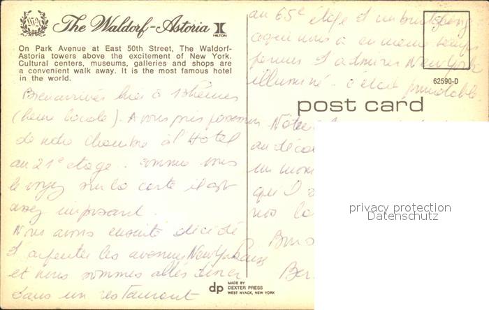 71969094 New York City Waldorf Astoria postalisch nicht gelaufen Erhaltung siehe scans KatCode: 14140340000000