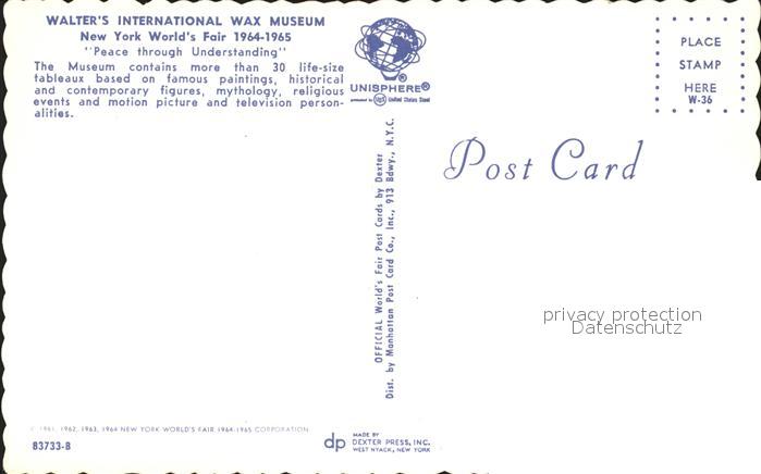 72246962 New York City Waltes International Wax-Museum postalisch nicht gelaufen Erhaltung siehe scans KatCode: 14140340000000
