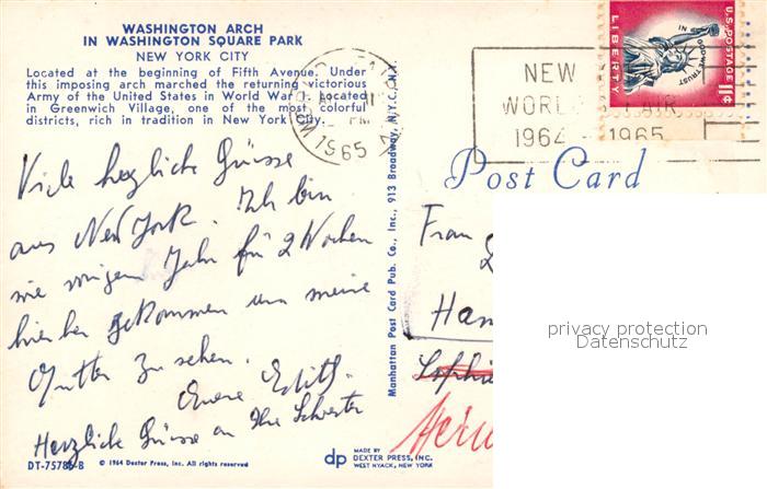 73611022 old postcard New York City Washington Arch postalisch gelaufen Erhaltung siehe scans [LiesaD40] KatCode: 14140340000000